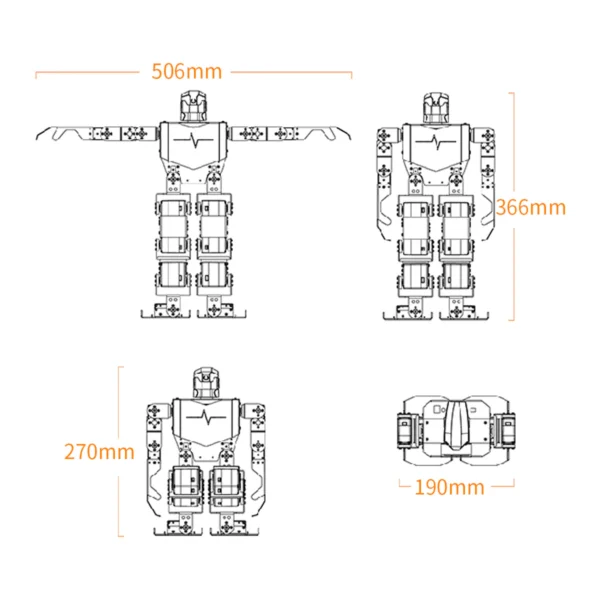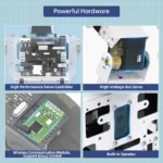 • Powerful Hardware: Equipped with a high-performance servo controller, built-in MP3 module, IMU sensor, Bluetooth 4.0 and 2.4G wireless module, supporting group control.