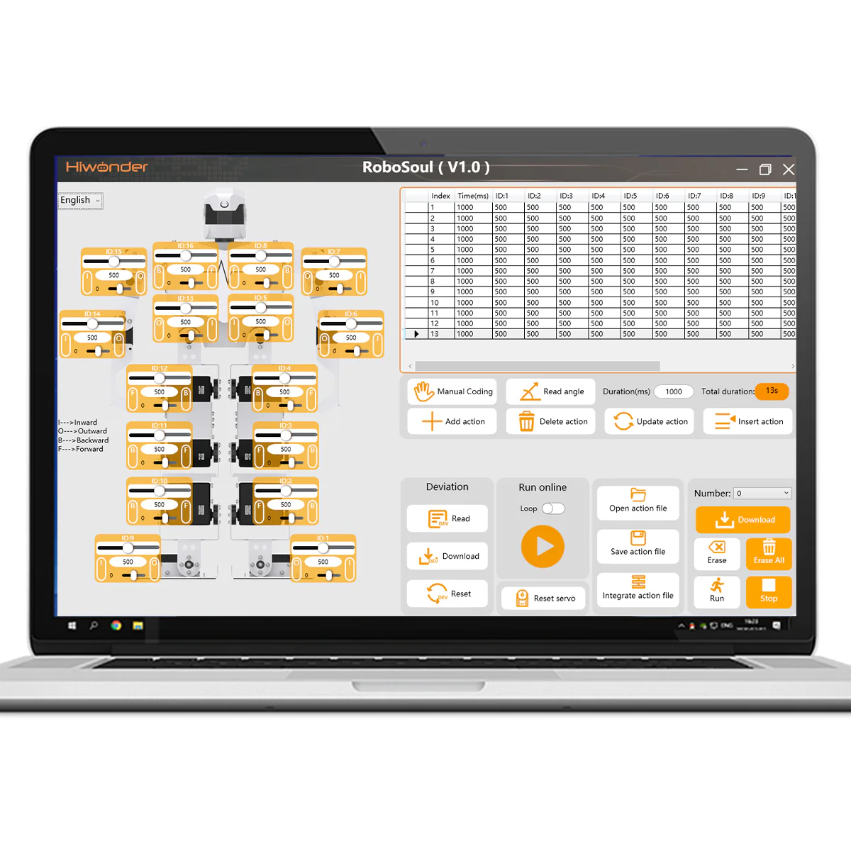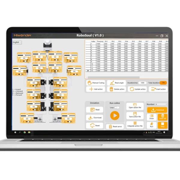 Provides graphical user interface software, allowing you to control the robot’s servos by simply dragging sliders. No coding is required to create and edit robot action sequences.