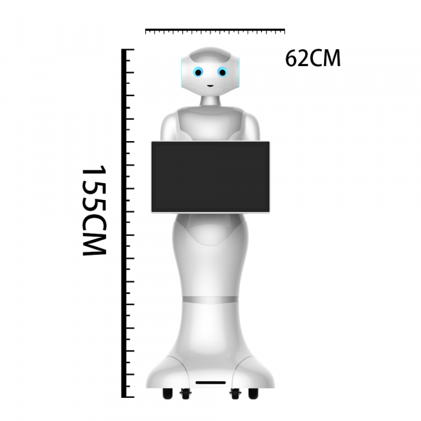 | 1 | Greeting the Visitor | The robot equipped with a sensor which can sense the human body when they are close to it, It will actively interact with the visitor, such as broadcast promotion information, or greeting, play video, etc, You can custom any information content when It interacts with people |